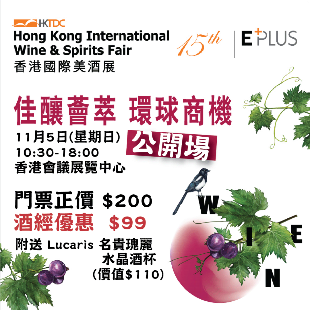 美酒展最後一天(11 月5 日)則同時開放予市民憑票入場, 一同交流美酒知識,享受品酒的樂趣。